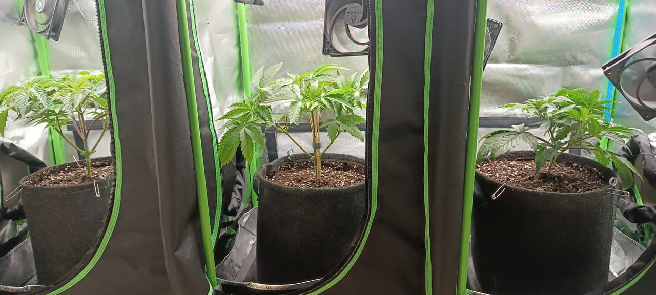 aber ab dem nächsten grow wieder in plastik. hab beim mit erde befüllen geschlampt und deswegen stehen die alle schräg und das nervt beim gießen. beim anheben geben die stoffwände ja nach und das lockert die seiten = wasser fließt direkt durch.