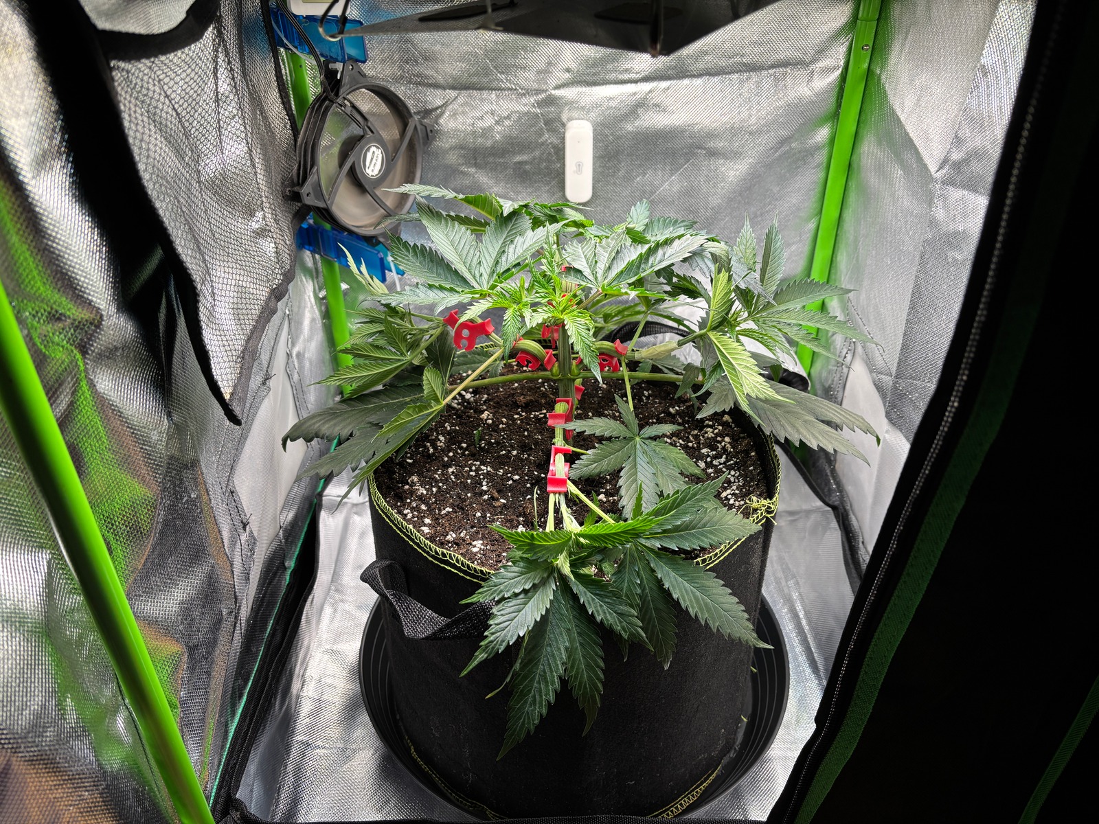 Habe meine alte 35 Watt Lampe mit den älteren Samsung Chips wieder ins Vegi Zelt gepackt, die passt doch am besten und ich kann wieder 18/6 fahren, möchte nun wissen was aus der 6 Std. Ruhepause resultiert...
