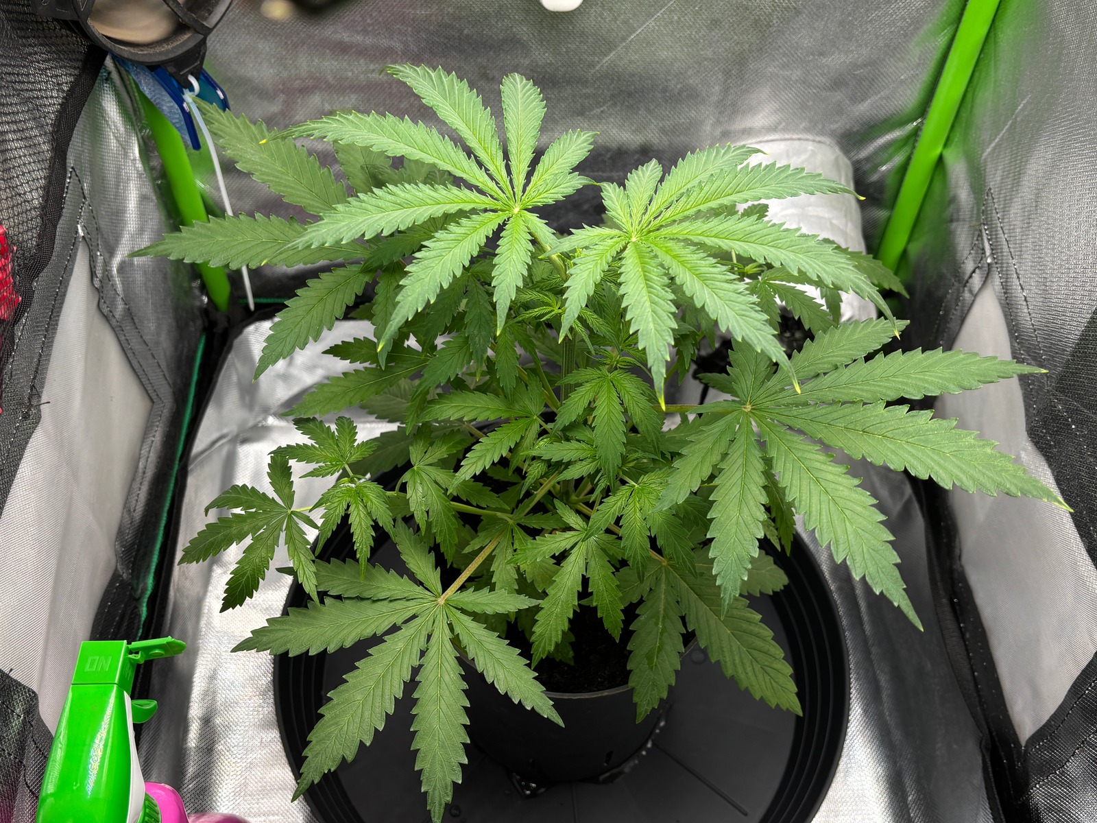 Nun gut, jetzt mal schauen wie es weitergeht. Bittersalz 🧂 u. Calcium 💊 wird in diesem Grow nicht nochmal extra zugesetzt, gibt also nur noch die 2x Hesi Produkte. Ob ich diese dann nochmals auf 100% fahre, auf die gesamte Blütezeit bezogen steht noch zur Frage. Der PH-Wert wird auch nicht mehr großartig korrigiert.