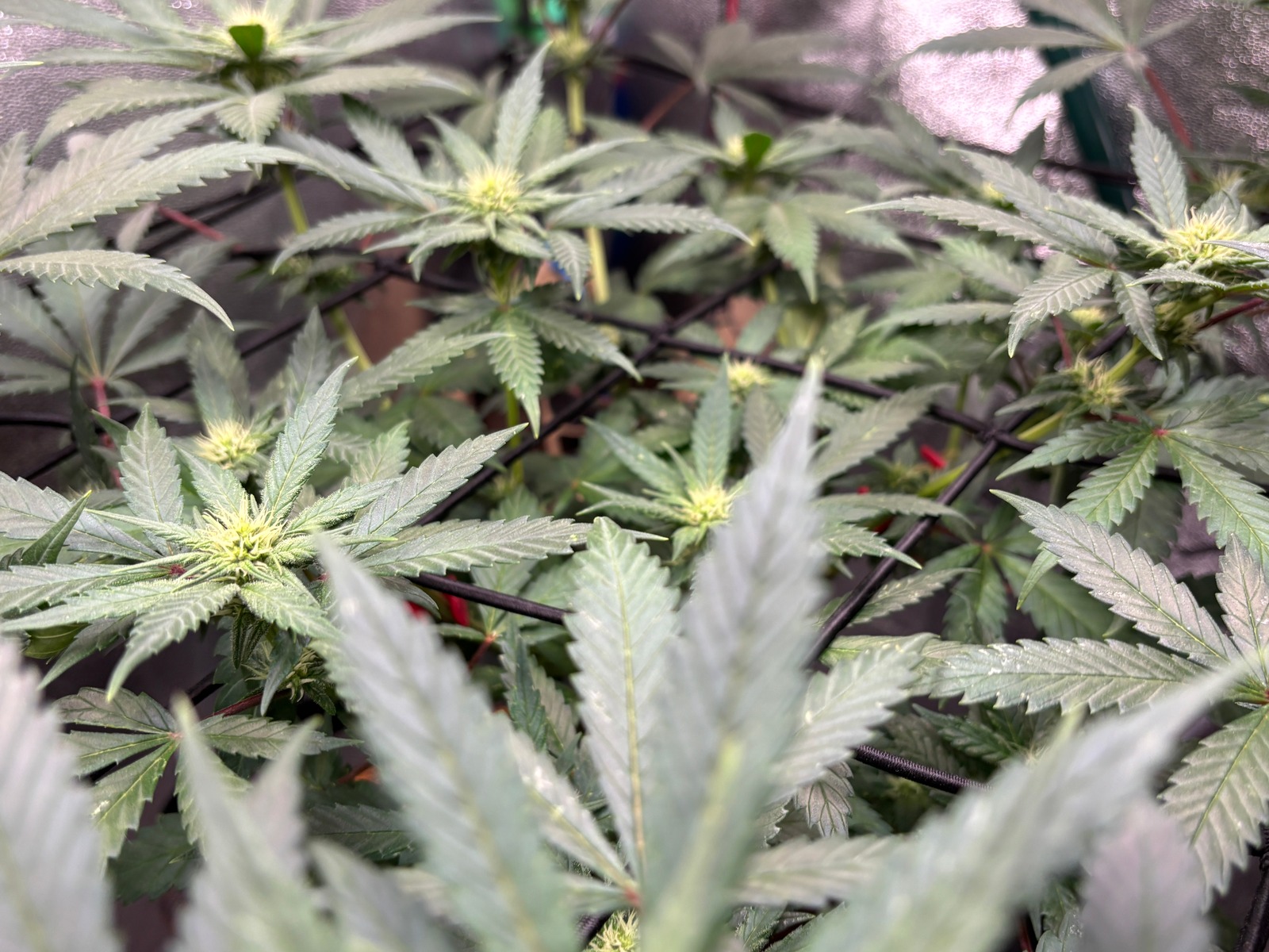 Die Buds sollen ruhig noch etwas zulegen. Dennoch wärs schön wenn Sie etwas gaß gibt. Siehe Blätter unten: was meint Ihr? leichte überdüngung vielleicht.. beim Bild links: K.A.