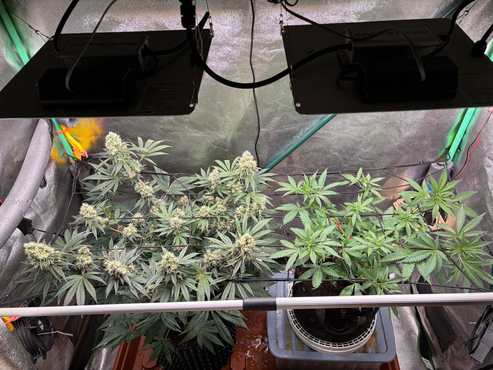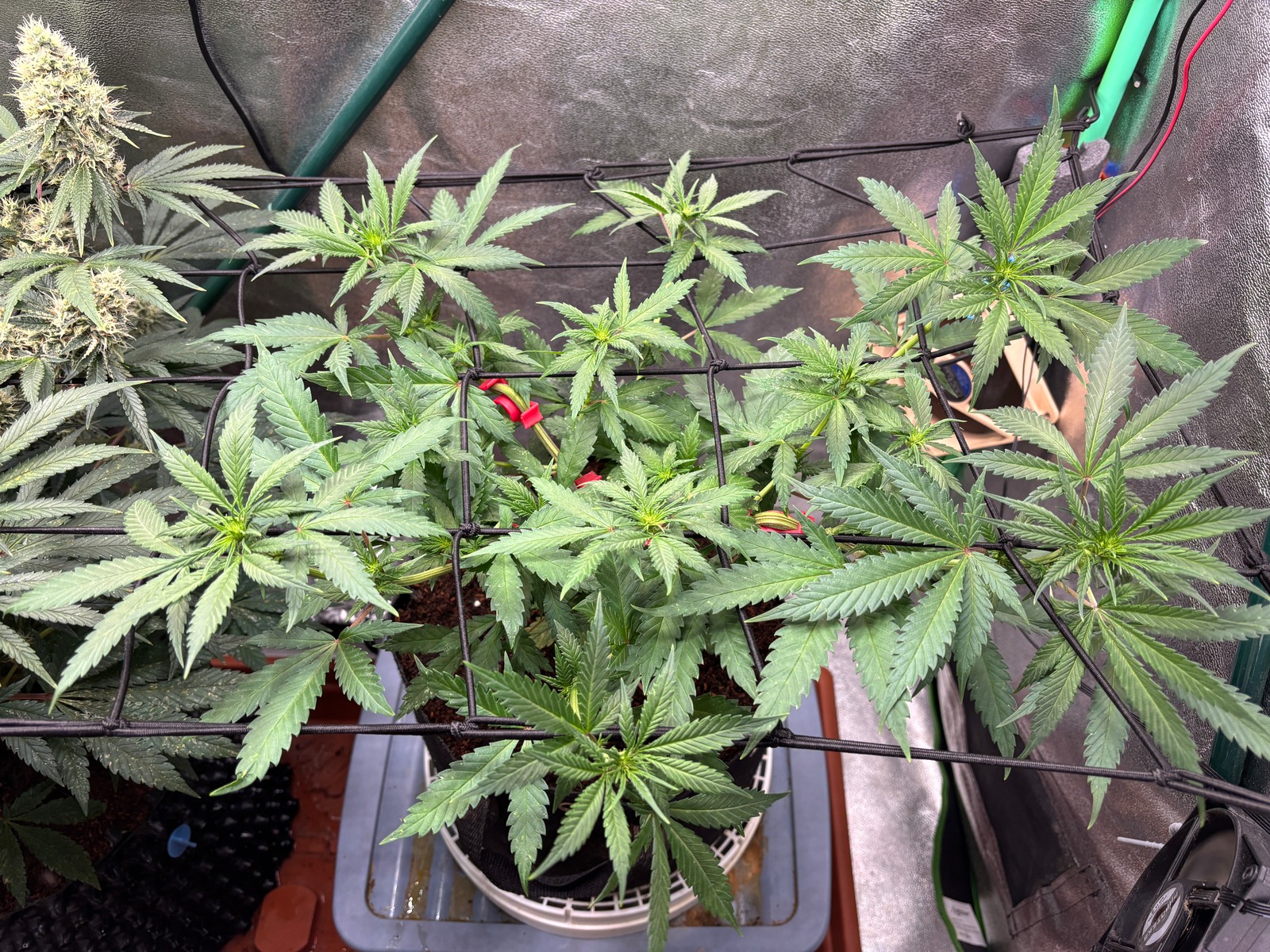 Ich werd mit dem Netz versuchen die großen sowie die kleinen Triebe auf eine Höhe zu bringen. In wie weit mir das geklingt ist fraglich, denn die Höhe bestimmt eigentlich die MAC u. ich möchte irgendwie die Cocos Box darunter rausbekommen, die ist mir ein Dorn im Auge. 😣🤔