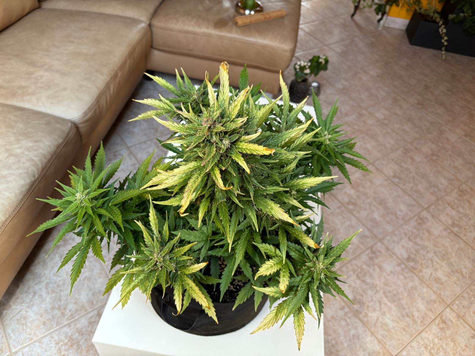 Wie schön sie wachsen, hier ganz ohne LST oder HST. War anfangs wirklich sehr windig bis stürmisch, dann dieser "Dauerfeuchte" ... vom Licht bzw. Sonnenmangel nicht zu sprechen. Heute gab es noch in ganz minimaler Menge Blüh Complex u. das maximale an Phosphor Plus.