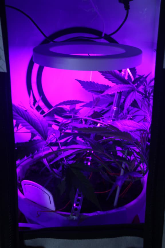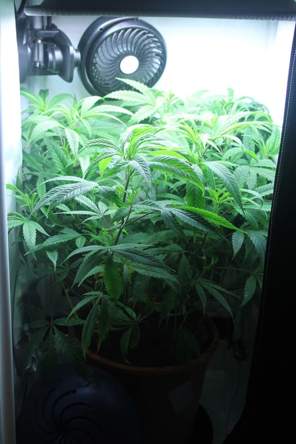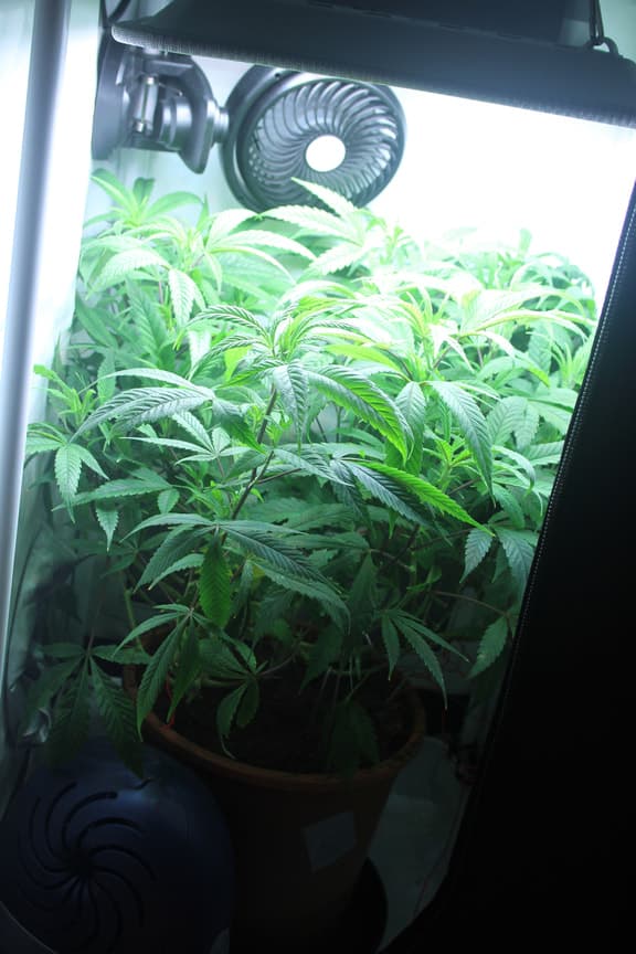 die pflanze musste in die blüte , also hab ich erst mal alles zusammen gesucht was noch da war und hab sie erst mal unter ein fürchterlich schlechtes licht gestellt. die box ist so klein das ein standard filter da nicht reinpasst.