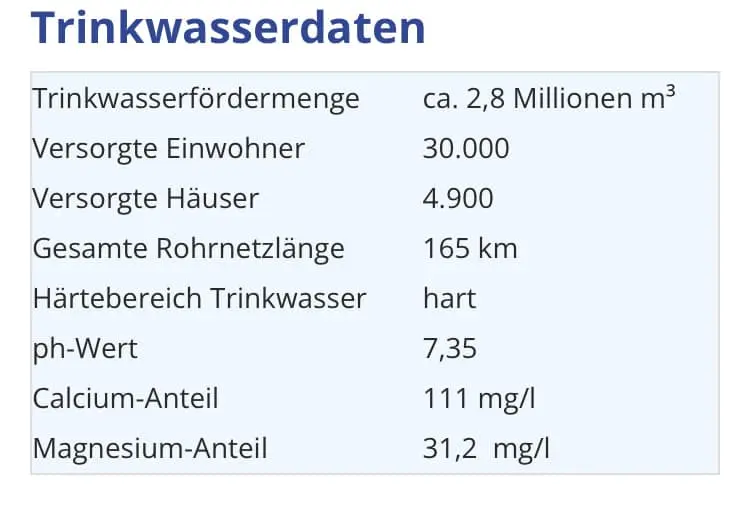 Hier sind die Wasser Daten. Wenn es notwendig ist kann ich auch alle Elemente auflisten 😅