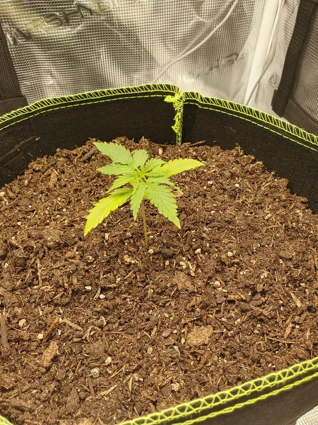 Eingepflanzt gleich in 15 L Stofftöpfen und nach der Keimung mit Root-Juice (BioBizz) gegossen.