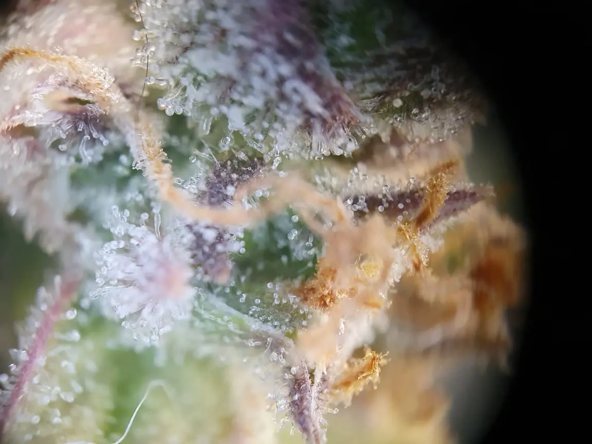 Die Trichome sind teils milchig und sehr wenige bernsteinfarbige dabei.
