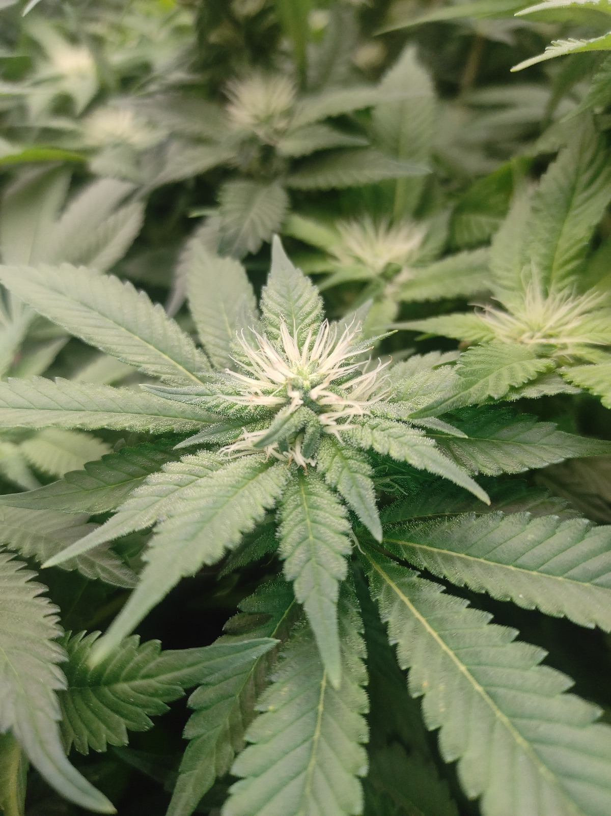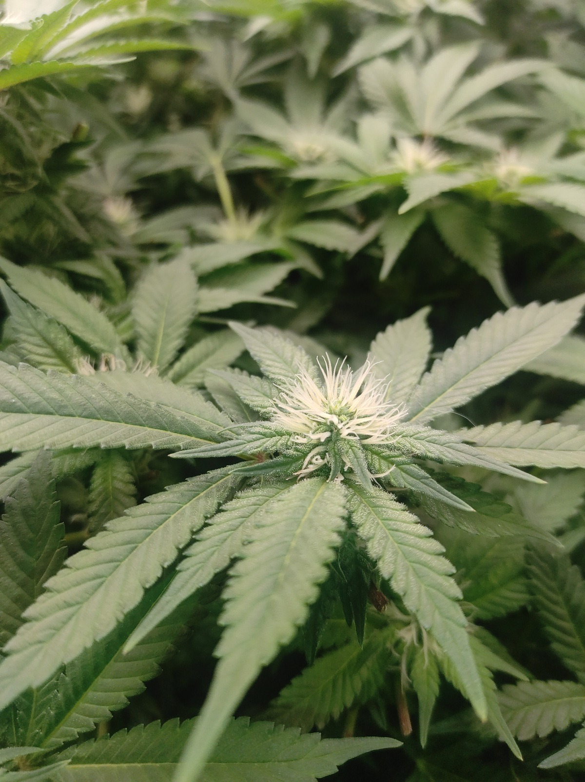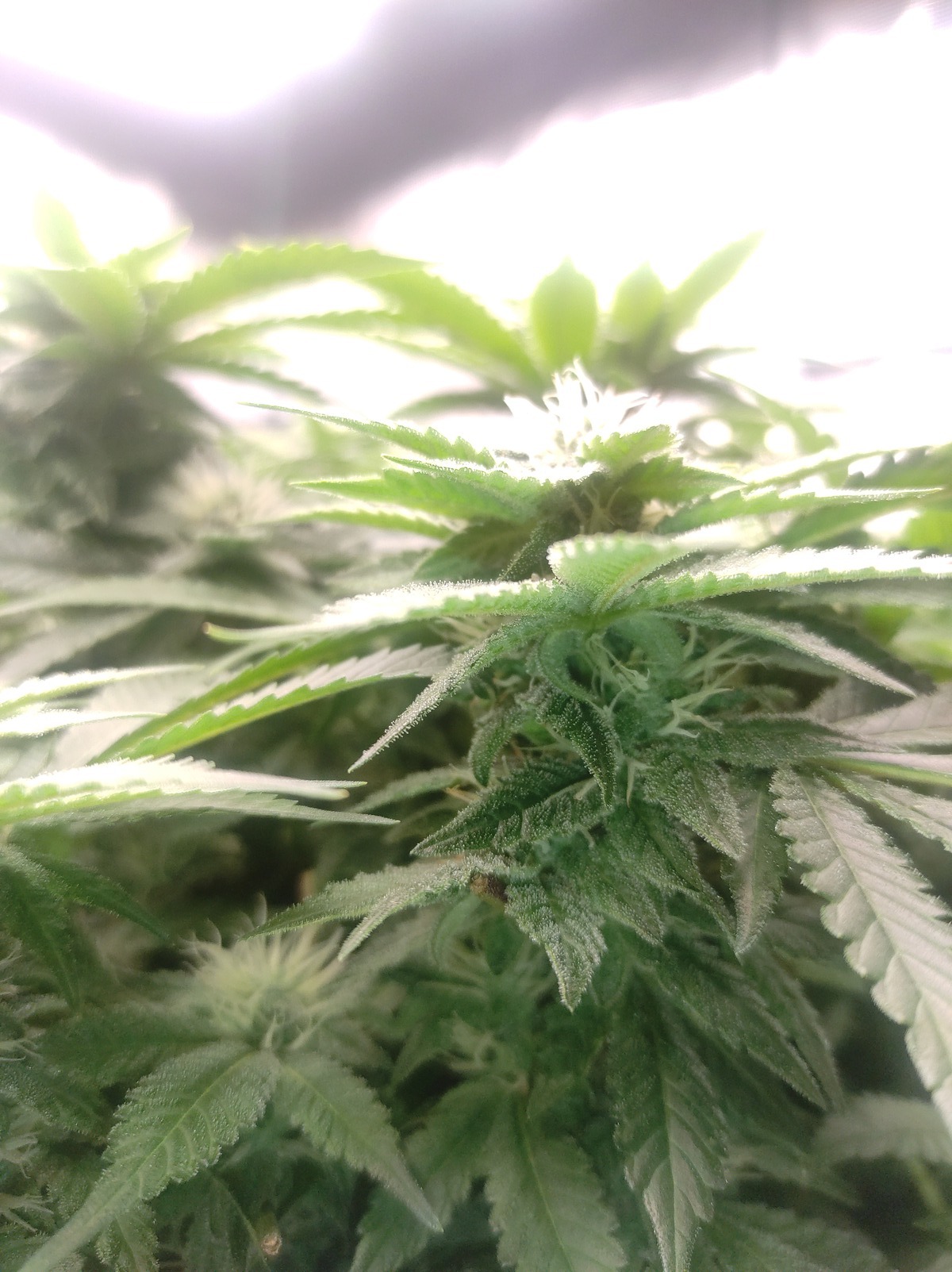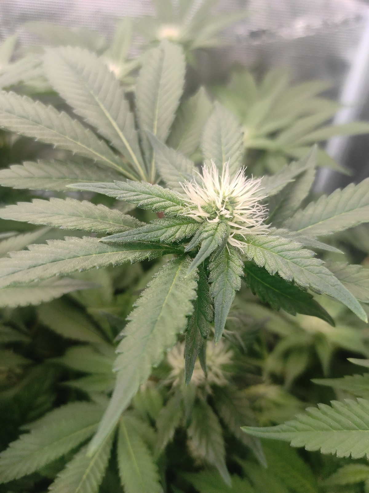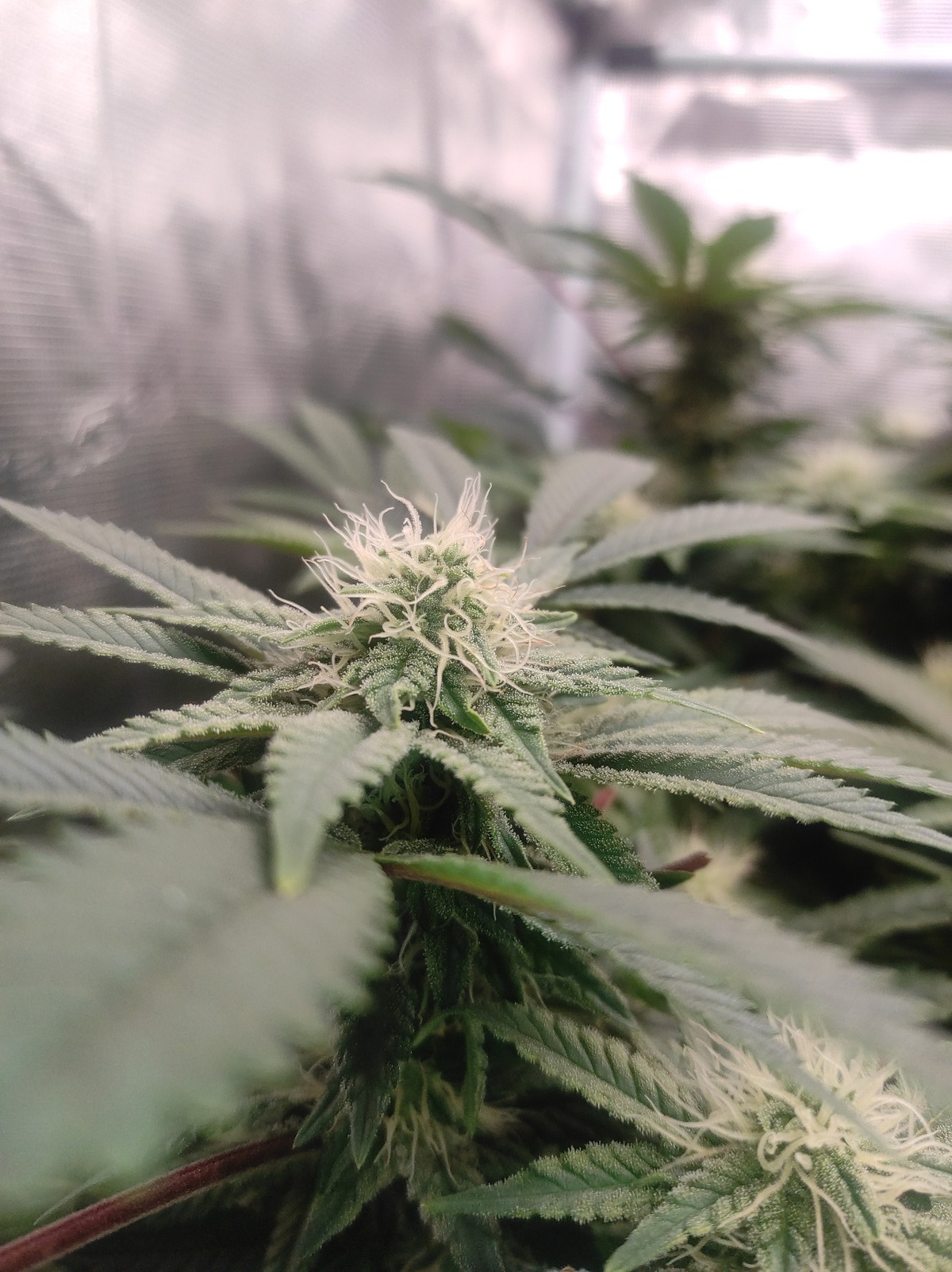 Links fänkt solangsam auch zu herbsten (sag man das so?) die wird in 1 Woche oder so bestimmt soweit sein, bald gehts an Trichome checken.