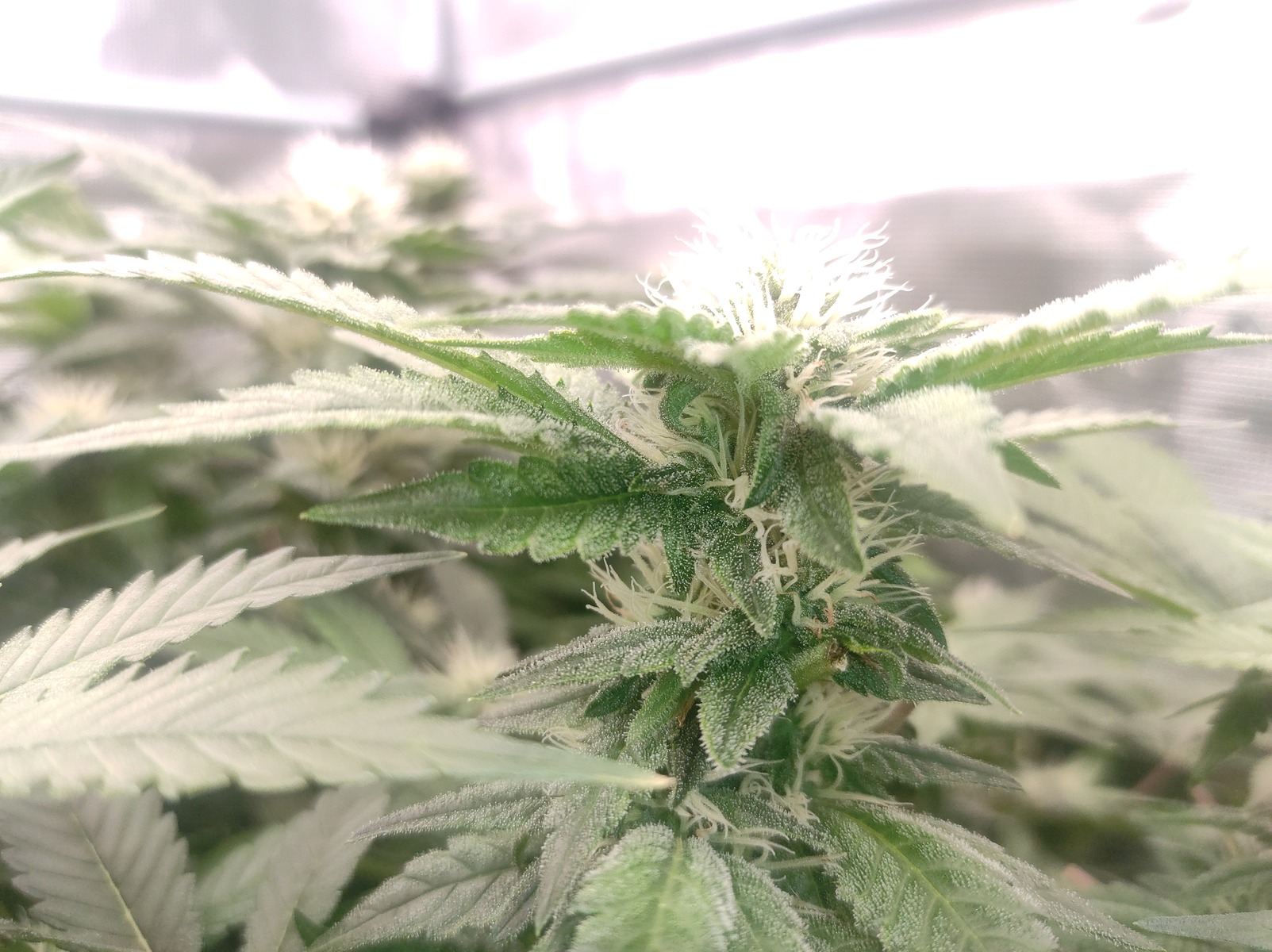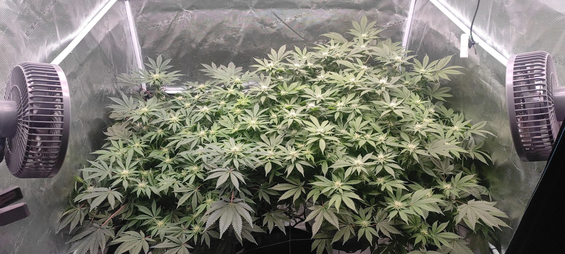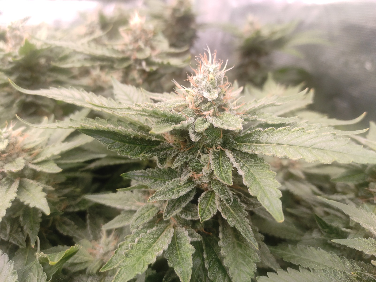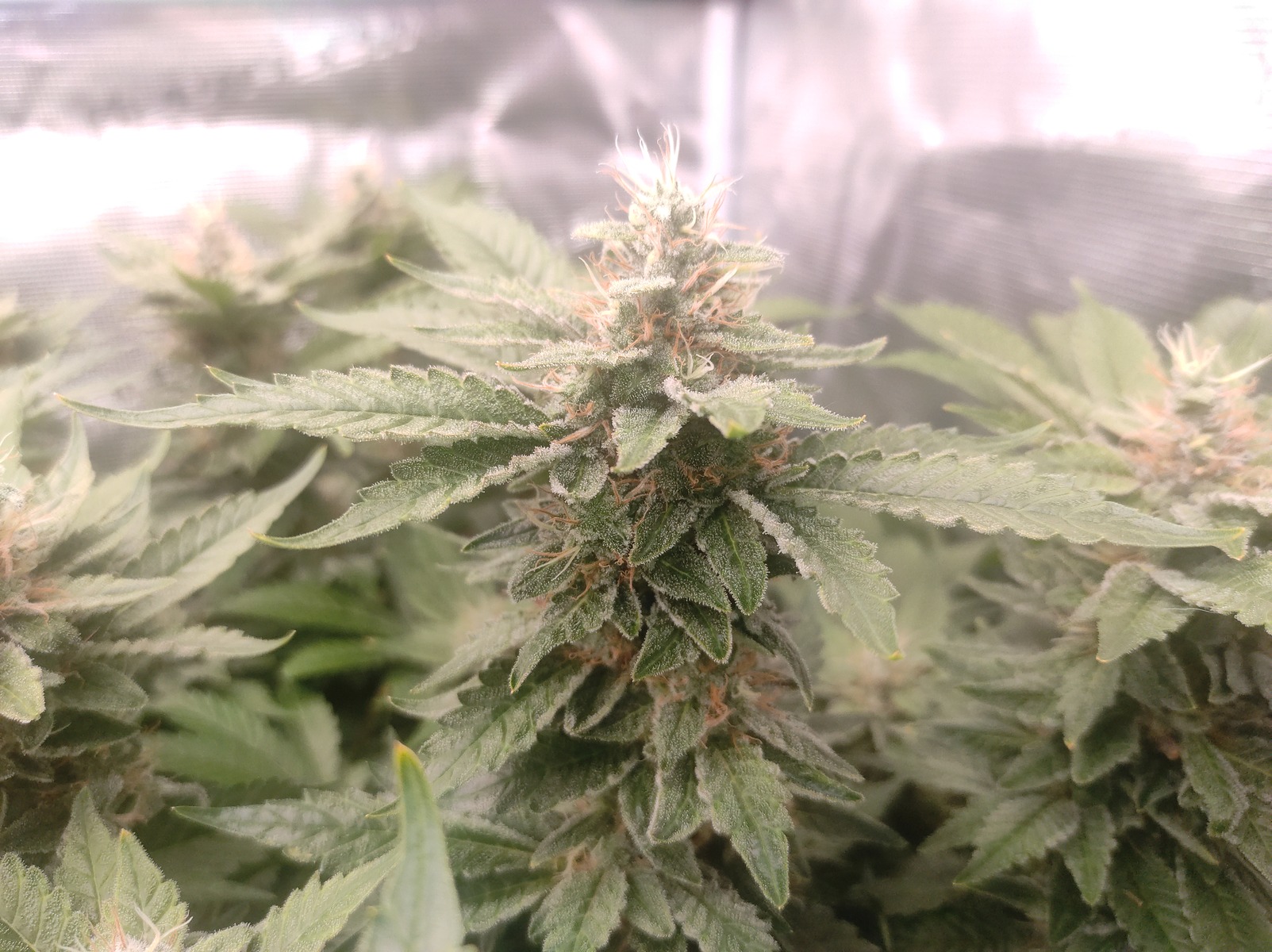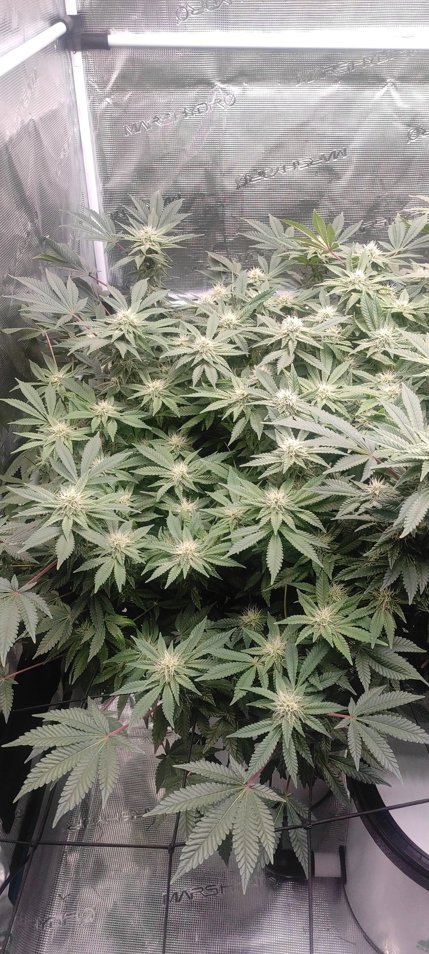Links fänkt solangsam auch zu herbsten (sag man das so?) die wird in 1 Woche oder so bestimmt soweit sein, bald gehts an Trichome checken.