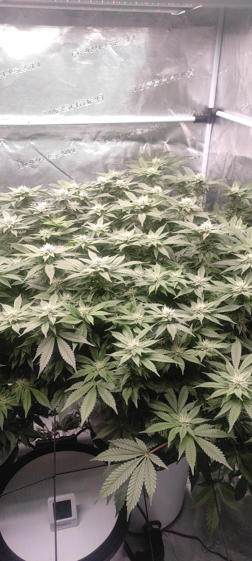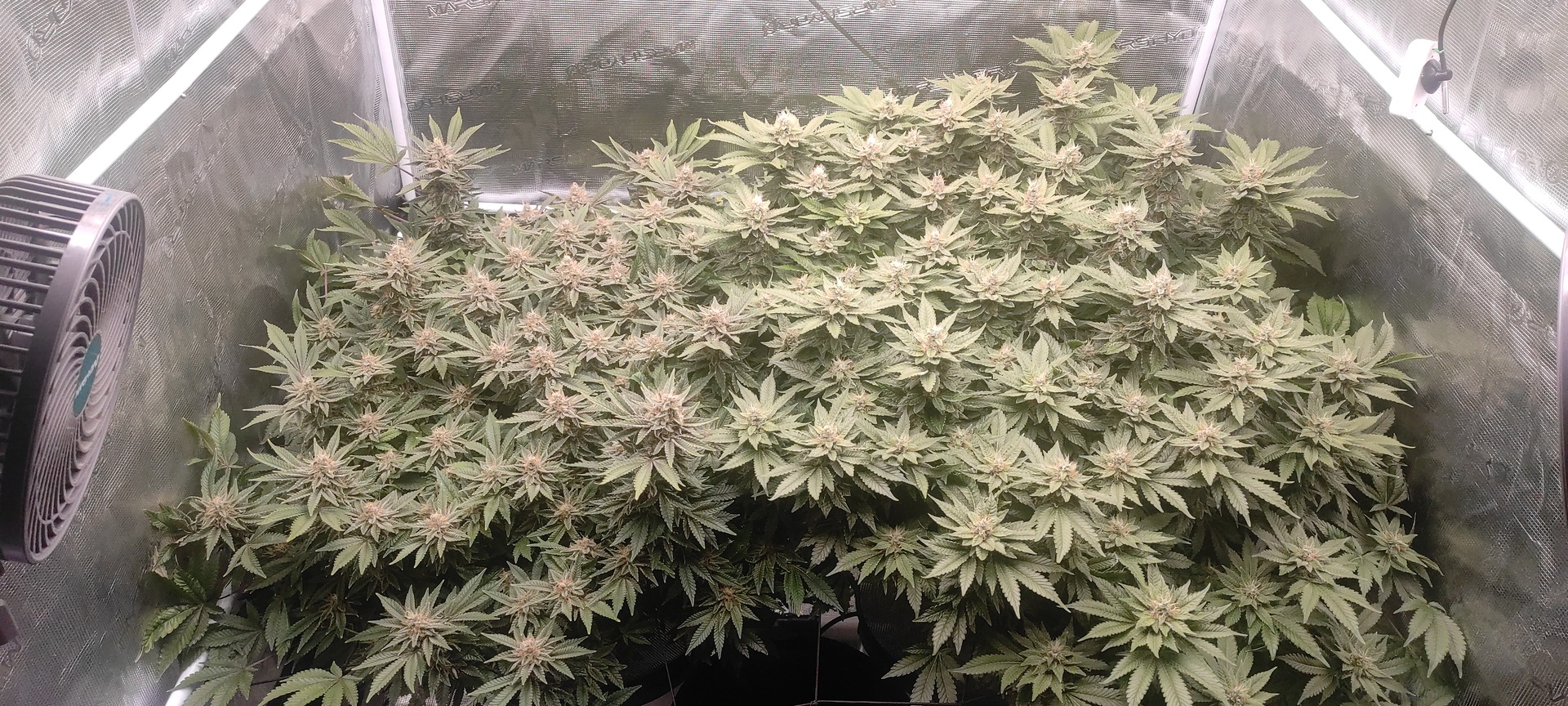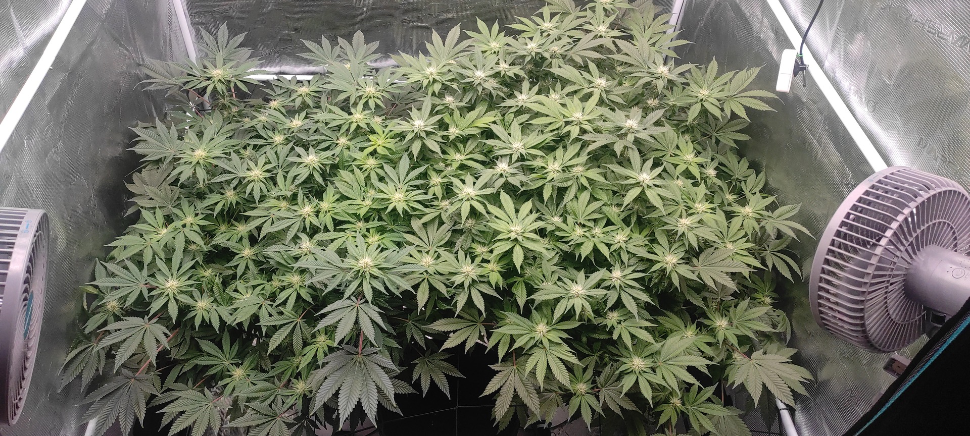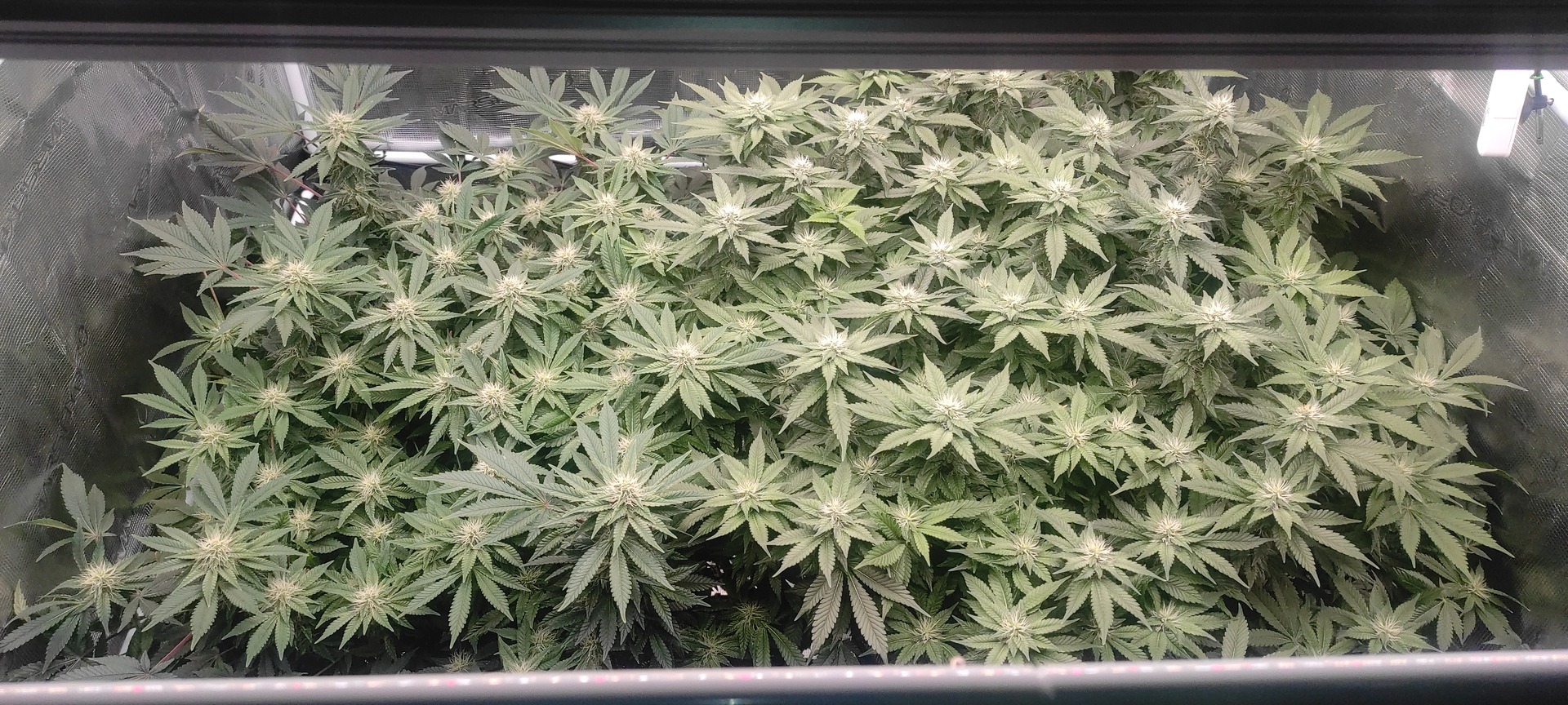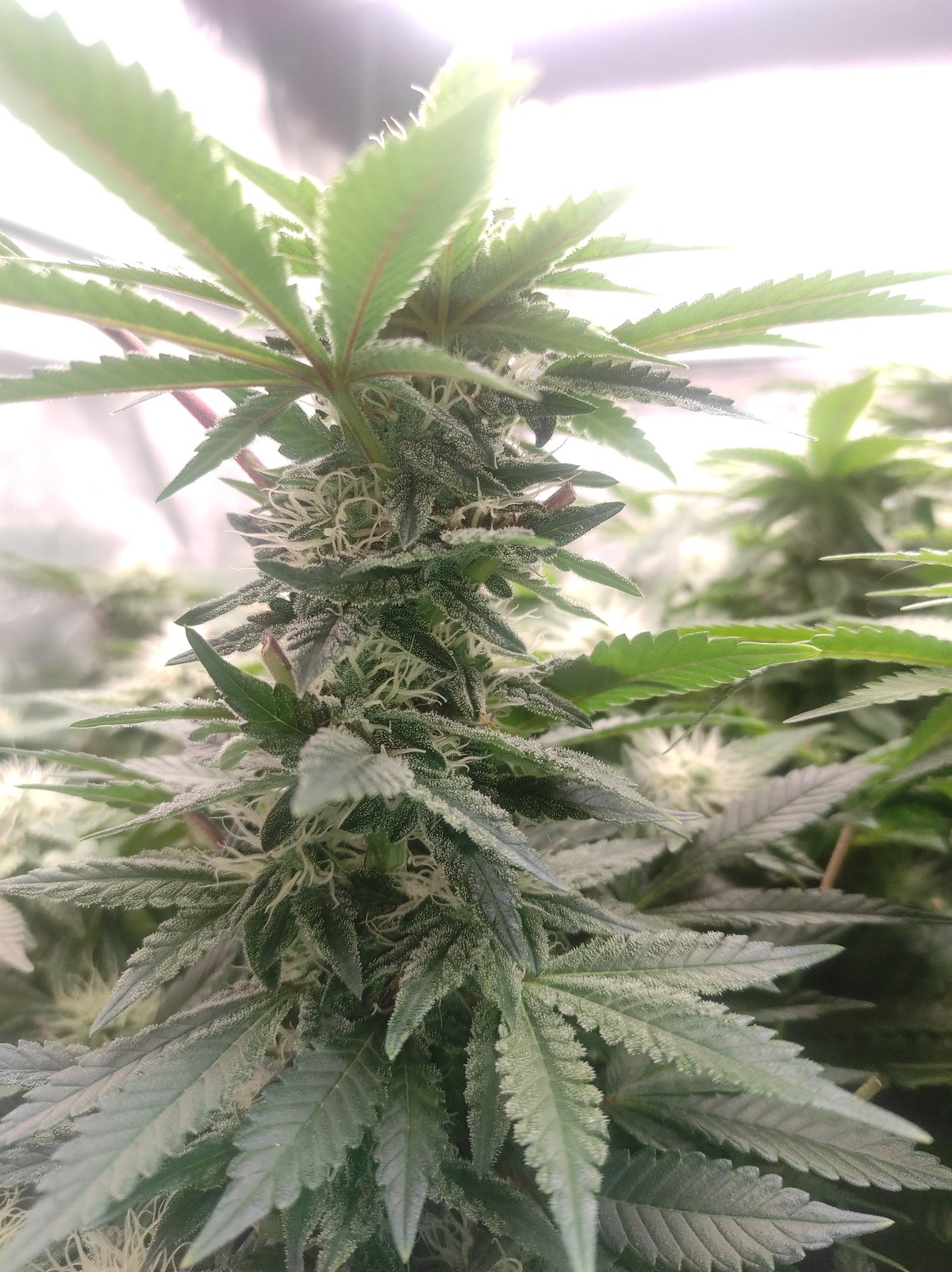 Links fänkt solangsam auch zu herbsten (sag man das so?) die wird in 1 Woche oder so bestimmt soweit sein, bald gehts an Trichome checken.