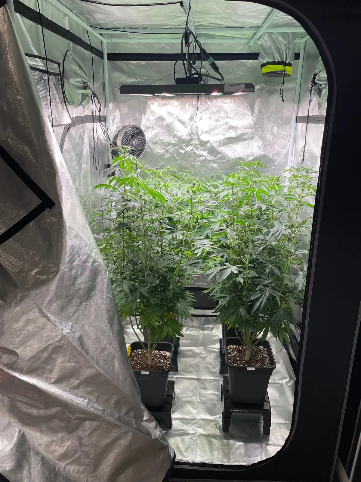 Sorry ist alles ein bissen untergegangen momentan echt viel um die ohren. Muss sagen muss wohl morgen das große Zelt aufstellen weil die immer weiter nach oben wollen und bald kein Platz mehr ist in den Zelt. Sind natürlich auch ein Stück Höhe gekommen durch die drain Master. Würde morgen nochmal ein paar Bilder hochladen von der Vorblüte, hab jetzt grade leider nur das eine Bild.