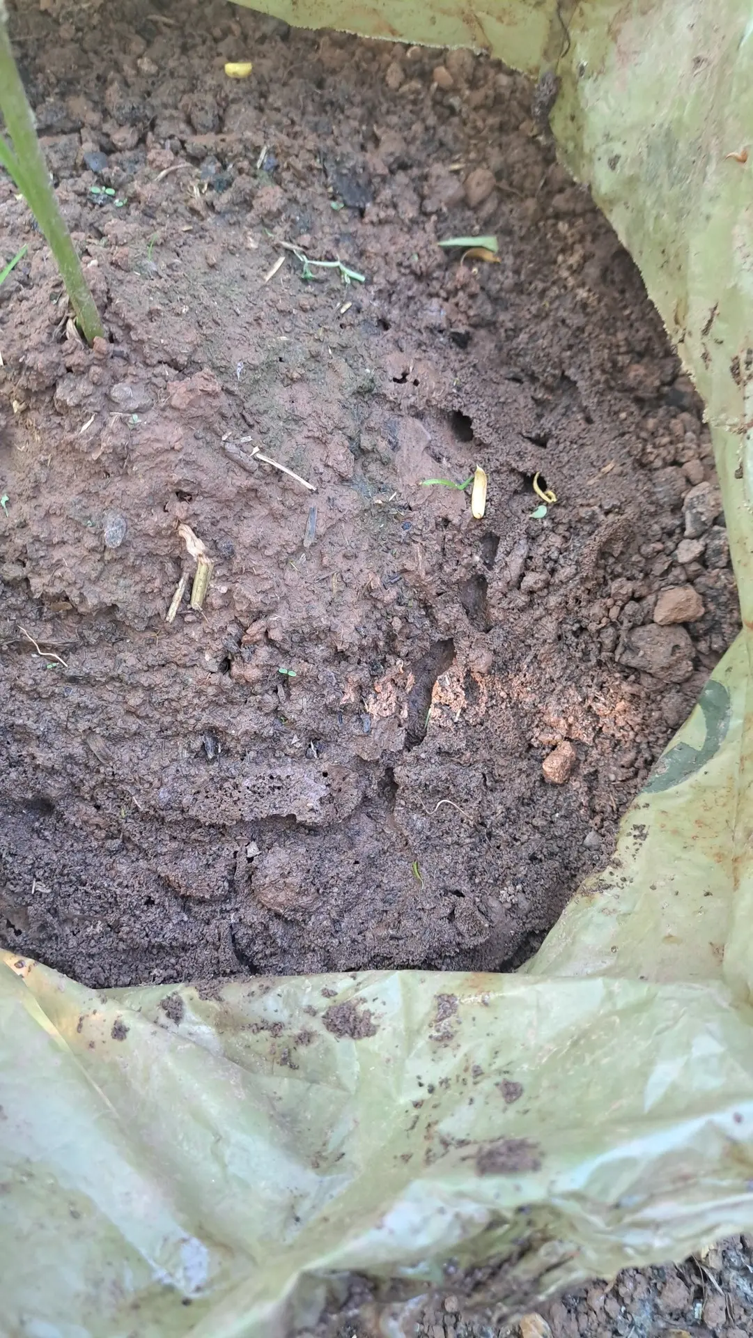 Werde morgen nochmal vorbei kommen und schauen wie es ihnen geht. Ansonsten die Erde in dem einen Sack aufgelockert, einen neuen Samen rein und wieder eine Flasche drüber. Hoffe dieses mal wird.