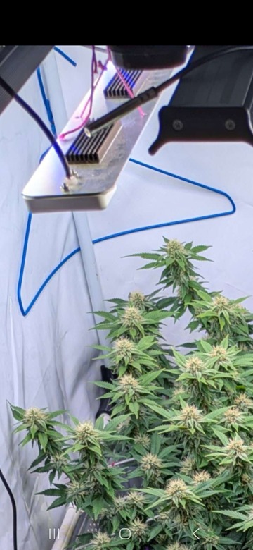 Obwohl ich meine Lichtzyklen auf die Nacht gelegt habe, ob nun Sommer oder Winter (ist einfach effizienter), hatte ich zum Teil Temperaturen von jenseits der 35°Grad im Growzelt. Ich habe bis zu 4 Ventis laufen gehabt, sowohl über als auch unter dem Blätterdach. Auch die Abluft musste ich zeitweise viel höher stellen als sonst. Bei hohen Temperaturen, wenn es denn sehr trocken war, musste ich oftmals mit 'nem Luftbefeuchter ran.