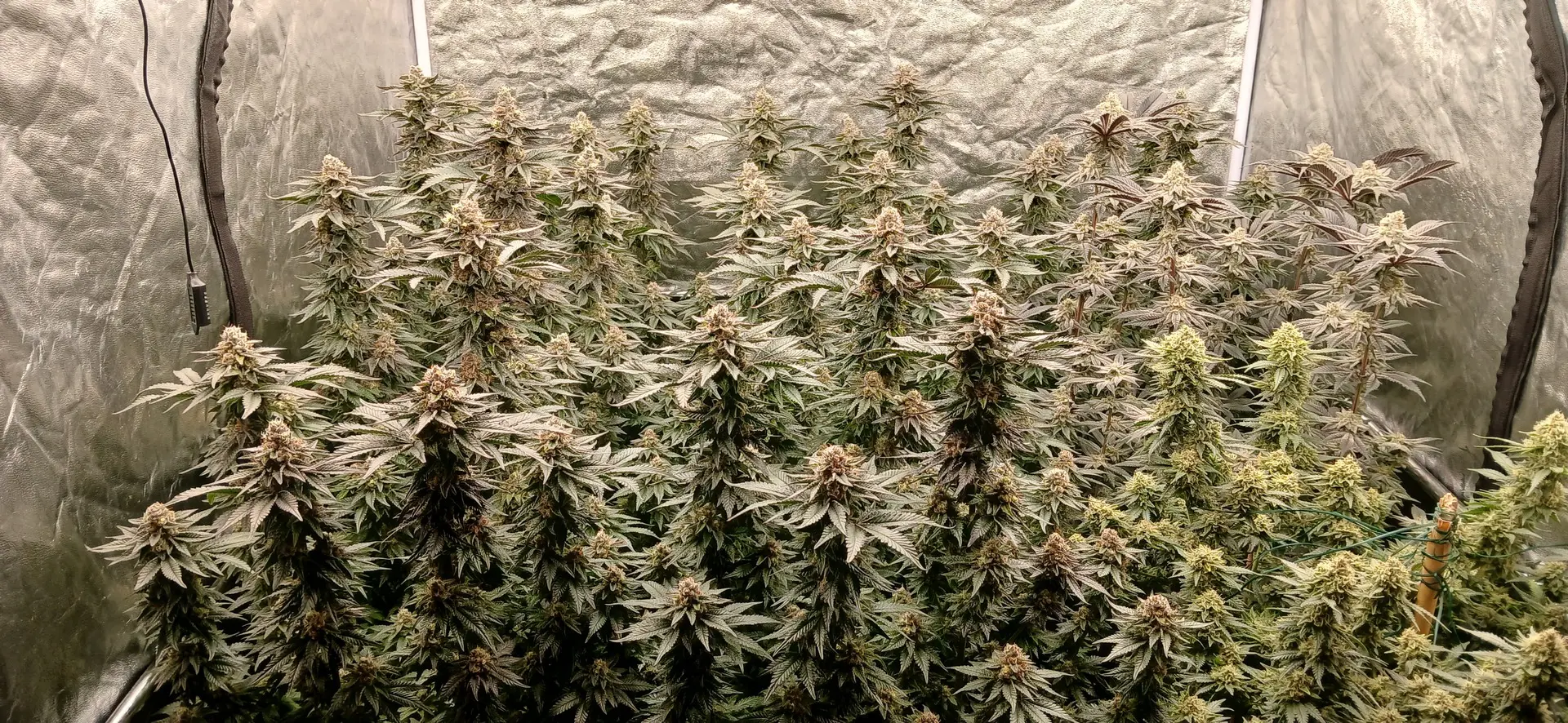 Die Critical kam diesmal vom Wuchs her nicht so gut hin, und ich musste sie an all möglichen Stellen mit Draht stützen. Die Mimosas, obwohl zu Anfang mit ein paar kleineren Problemen wie den CalMag Problem, und später mit den Schmierläusen, hat sich im Laufe des Grows immer besser entwickelt. Hier werde ich die Genetik auf jeden Fall für's Erste sichern. Bei der Wedding Cake bin ich mir da noch nicht so sicher.