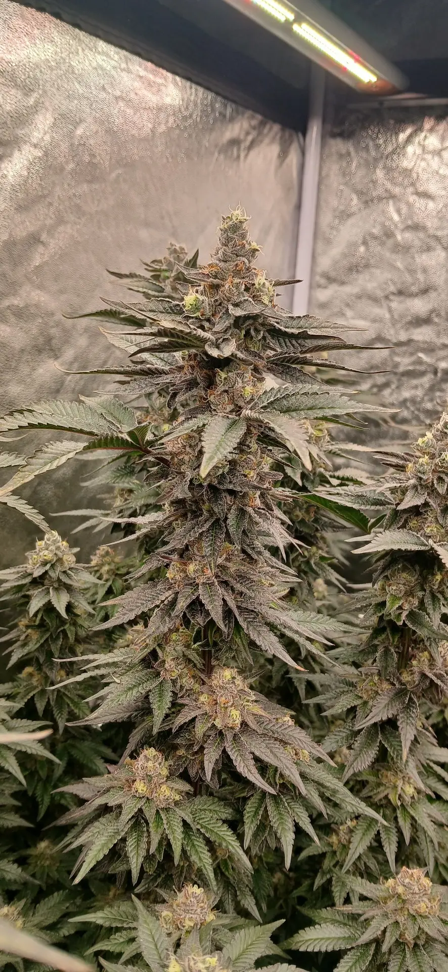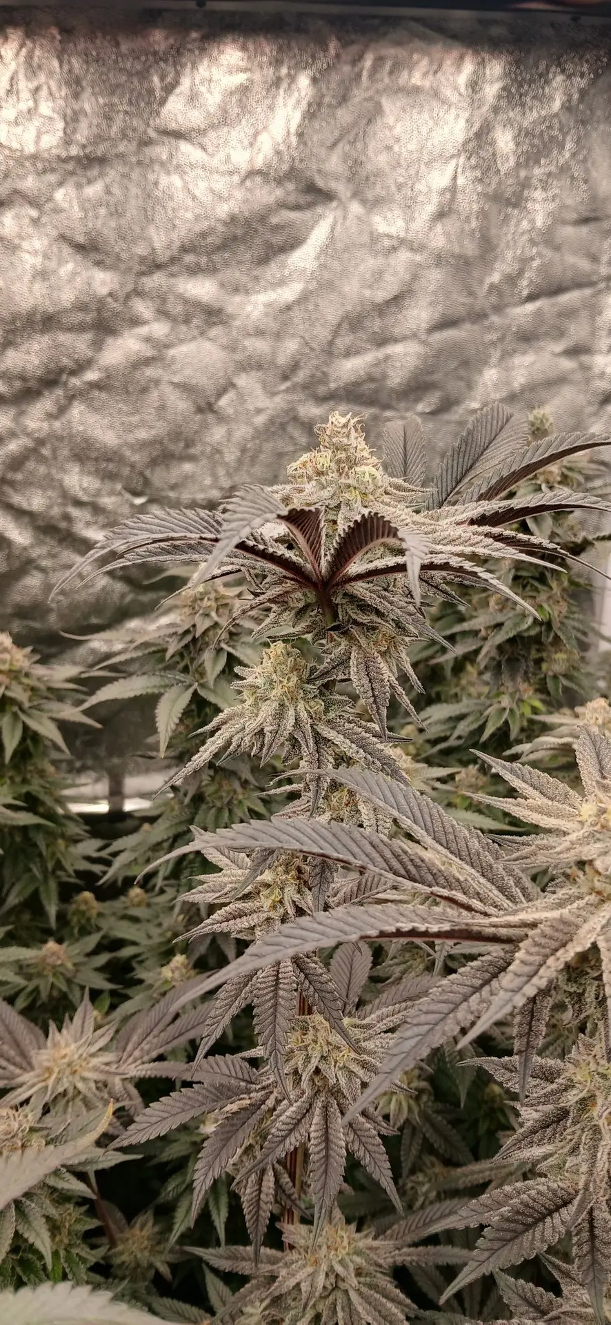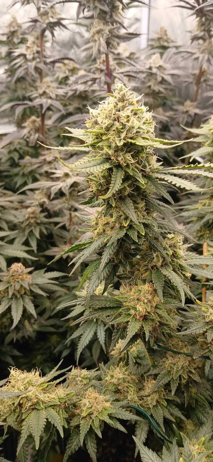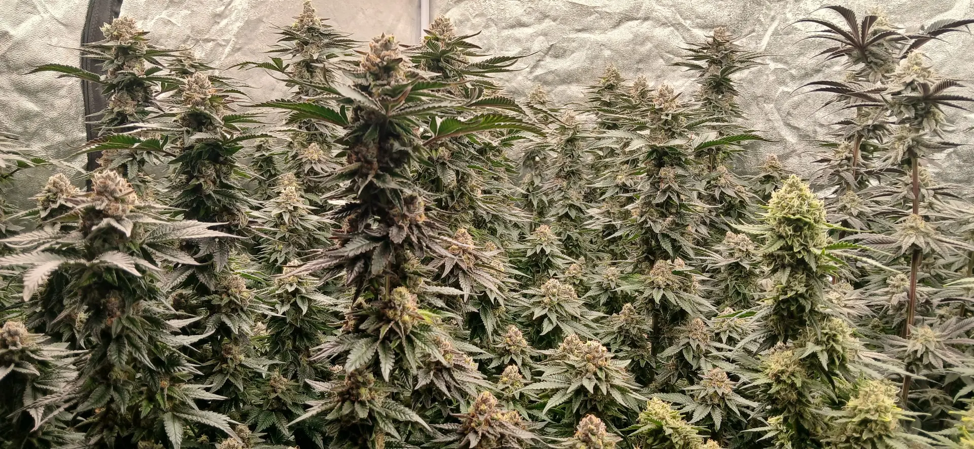 Noch etwa zwei Wochen, bin ganz zufrieden. Am besten performt im Moment die Mimosa, sie saufen wie verrückt. Die Wedding Cake ist zwar optisch ein Hingucker, aber mir gefallen die recht großen Internodien nicht so sehr. Ich mag mehr so dichte, dicke Kolben.